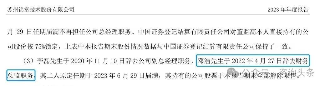 据锦富技术2021年年报披露,邓浩于2022年4月27日辞去该公司财务总监一职,他的简历如下:
