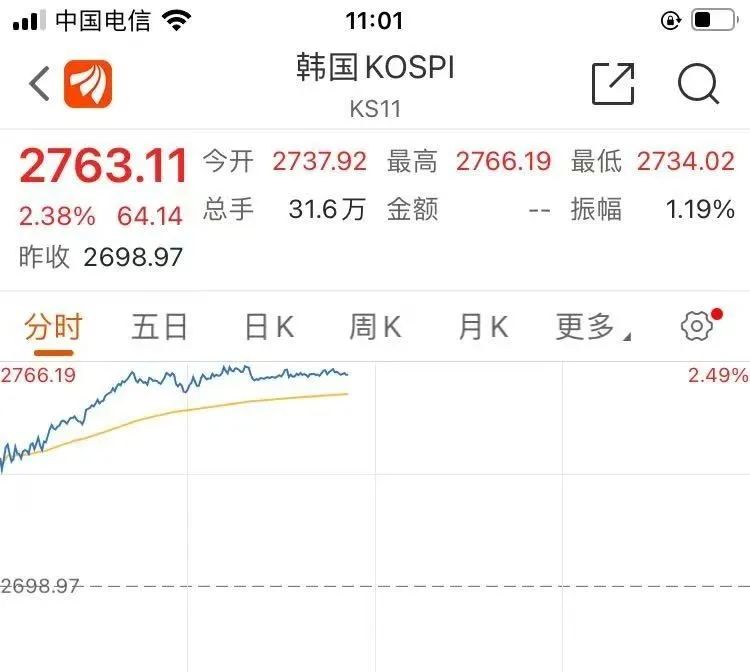 值得注意的是,今天韩国股市高开,截至发稿,韩国KOSPI指数大涨2.38%,较4月低点上涨20%,进入技术性牛市,韩国KOSPI200指数也大涨2.53%。